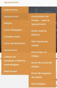 No menu que abre à direita, colocando o cursor sobre Escolas do Agrupamento, aceder ao separador de cada escola.